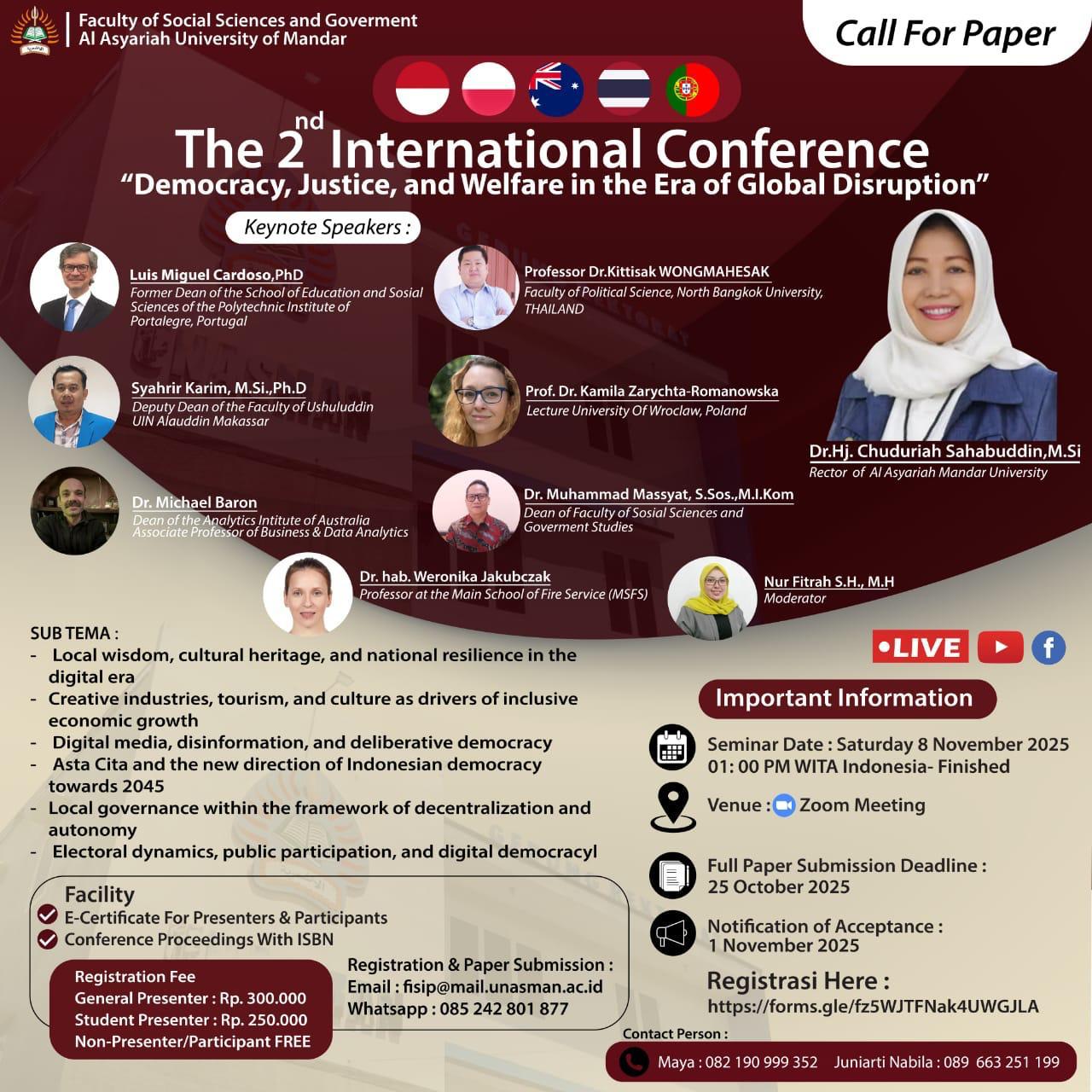 Puji syukur kita panjatkan ke hadirat Allah SWT atas segala rahmat dan karunia-Nya sehingga kita dapat terus berkiprah dalam pembangunan pendidikan tinggi di Universitas Al Asyariah Mandar. Fakultas Ilmu Sosial dan Ilmu Pemerintahan (FISIP) hadir sebagai salah satu fakultas yang berkomitmen mencetak lulusan yang berintegritas, berpengetahuan luas, serta mampu menjawab tantangan zaman di bidang sosial, pemerintahan, dan pembangunan masyarakat.